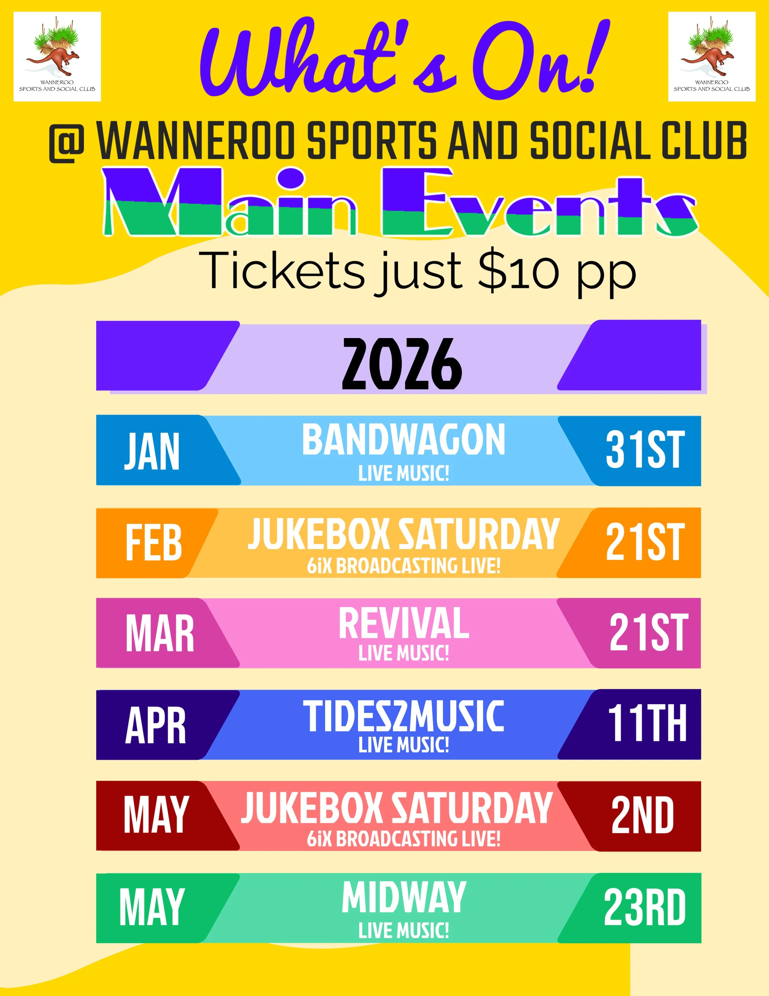 Come along and celebrate the new year with 6IX Jukebox. Just $10. Book on 9405 1522 or email office@wanneroossc.com.